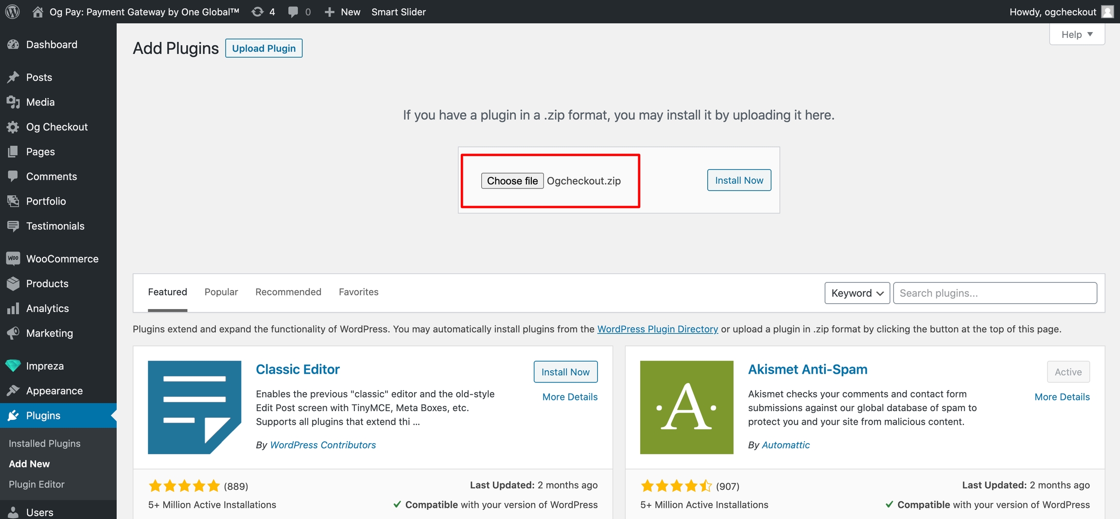 Choose the downloaded zip "casheerpay.zip" (Download Plugin) and click Install Now.