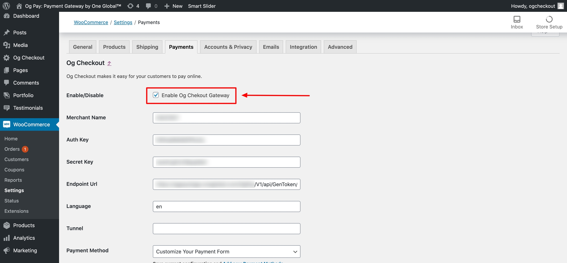 Step 2: Tick to enable the module and configure your keys & credentials.