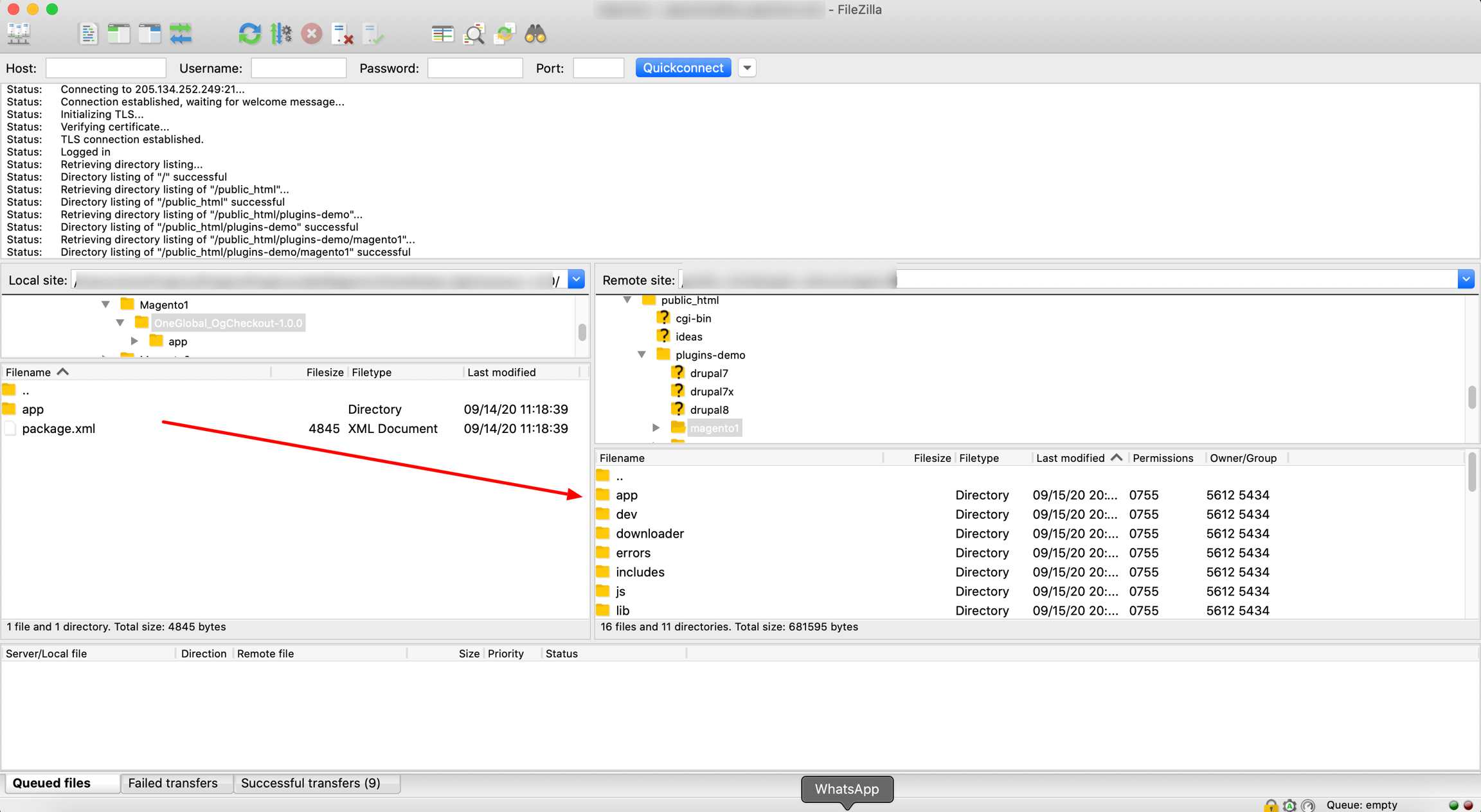 Login to web server via FTP client and go to your magento directory.