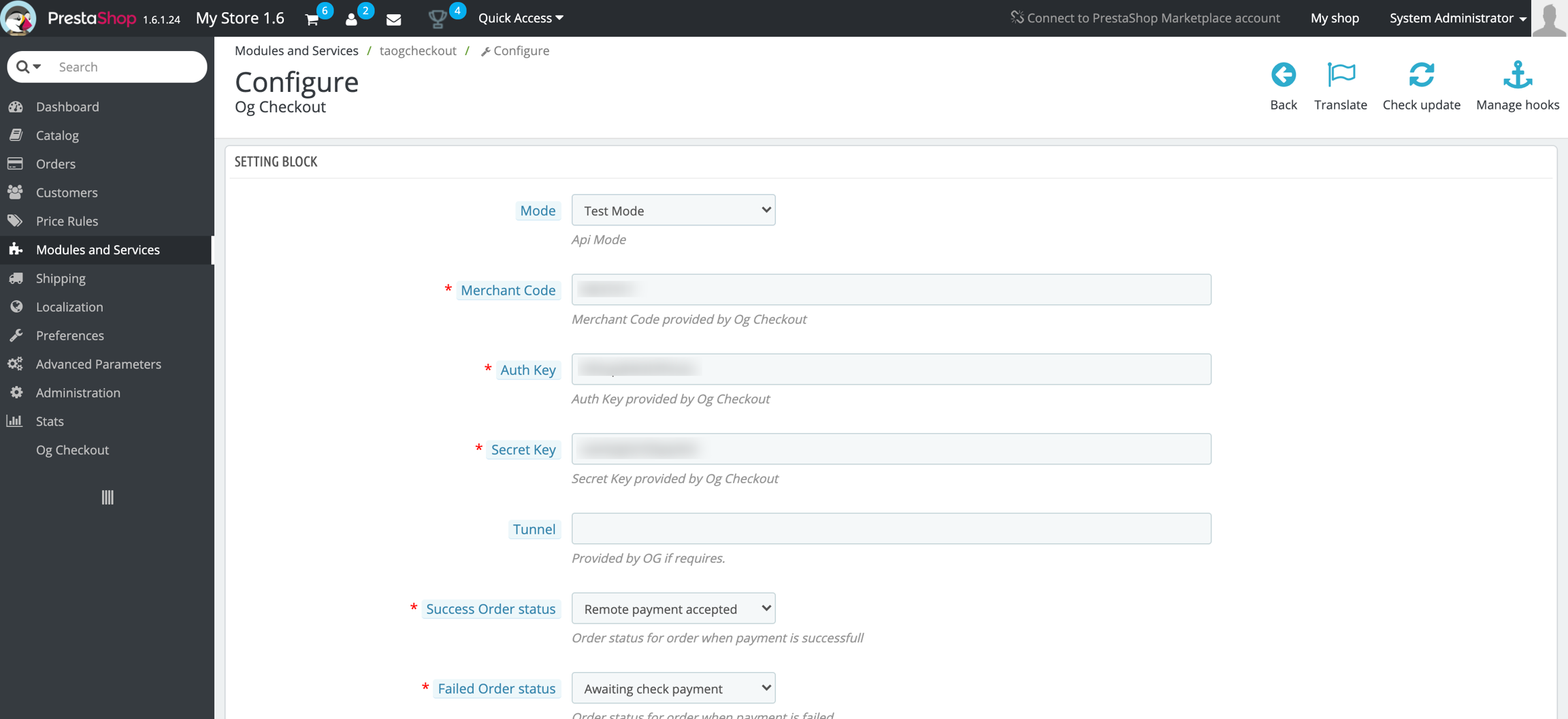 Integrating your PrestaShop store with Casheer Pay services allows you to accept payments on your PrestaShop store with simple installation. You can accept payments via Debit & Credit Card, & ATM Cards. The plugin offers seamless integration, allowing the customer to pay on your website with a high secure PCI compliance hosted environment and work across all browsers. and ensures compatibility with the below versions of PrestaShop.